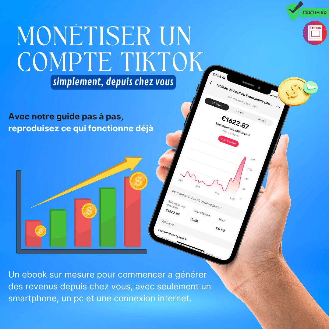 Conçue pour vous accompagner pas à pas vers la monétisation de votre compte. Avec cette formation, vous serez en mesure de créer des vidéos attrayantes et optimisées pour atteindre rapidement les 10 000 followers, seuil indispensable à la monétisation.